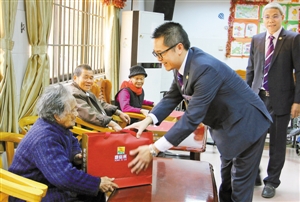 昨日,深圳光明新區公明商會來到公明福利院探望這里的老人,給老人們送上了慰問金和慰問品,并祝愿老人們身體健康、開心幸福。