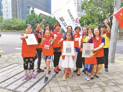 寶安分部小志愿者向市民推薦關愛環衛工人的項目。