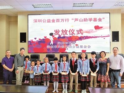 2013年四川雅安地震發生后,深圳特區報社、深圳市關愛行動公益基金會迅速行動,第一時間派工作人員趕赴災區,給當地部分受災村民和學生發放了緊急援助,并在調查摸底的基礎上,于2014年設立寶興、蘆山獎教助學基金,獎勵兩縣的優秀師生,幫扶困難學生。3年多來,獎教助學基金共計向1000多位優秀學生和教師發放118萬元資助,向災區人民傳遞了來自特區的大愛。