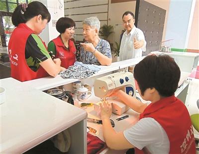 羅湖區(qū)社會福利中心U站的義工們,考慮到入住的老人衣著舒適和出入安全,近日特增設(shè)縫補(bǔ)服務(wù)。他們拿來縫紉機(jī)、針線工具和布料,隨時(shí)免費(fèi)為老人縫補(bǔ)衣服,制作輪椅和床上安全帶,受到老人和家屬的好評。  深圳晚報(bào)特約記者 黃天肇 攝