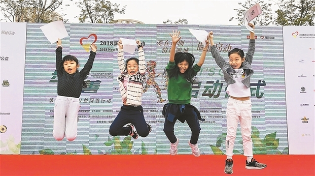 香蜜公園活動現場,“步步行善”小跑友高興地跳起來。