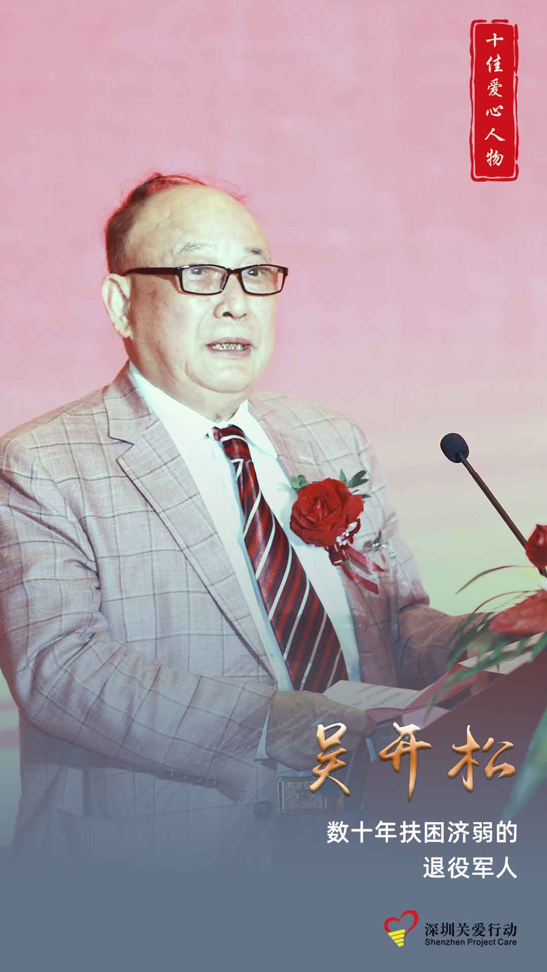 吳開松,深圳市東方明珠(集團)股份有限公司董事長。年近70的他,參加過對越自衛還擊戰,是一位殘廢軍人。他發起成立廣東省潮商公益基金會,多次組織大型慈善捐款活動并帶頭捐贈,據不完全統計,他為各地慈善公益募集的資金和實物價值近千萬元:其中捐建華陽初級中學教學樓;捐資設立華陽初級中學助教、助學基金;捐建村辦公樓;向中國殘疾人基金會捐款;在湖南、四川等地捐建希望學校。2020年初,他牽頭在汕頭潮商華陽中學主辦尊老敬賢暨困難兒童溫暖包慰問活動,幫扶老人和困難兒童。