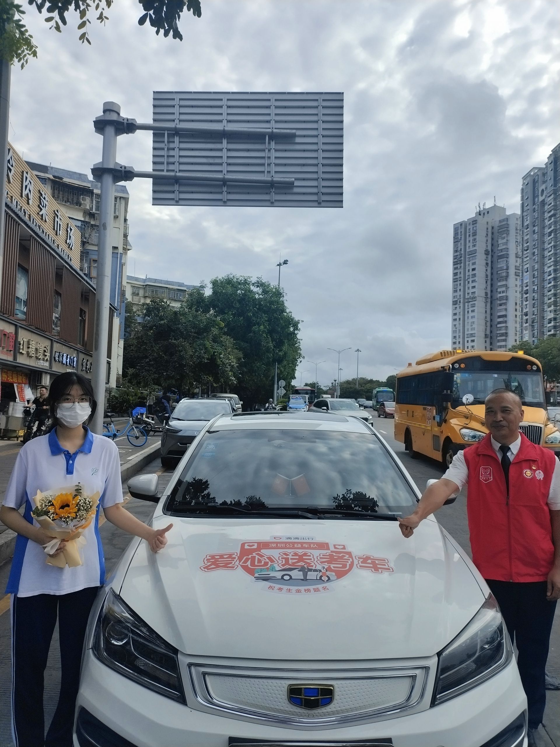 每年6月,黃天華會主動參加“愛心送考車隊”,他在引擎蓋上貼上“深圳公益車隊愛心送考車 祝考生金榜題名”的標志,換上紅馬甲,在高考三天期間基本上不對外接單,把所有的時間都用來接送有需要的高考學子。