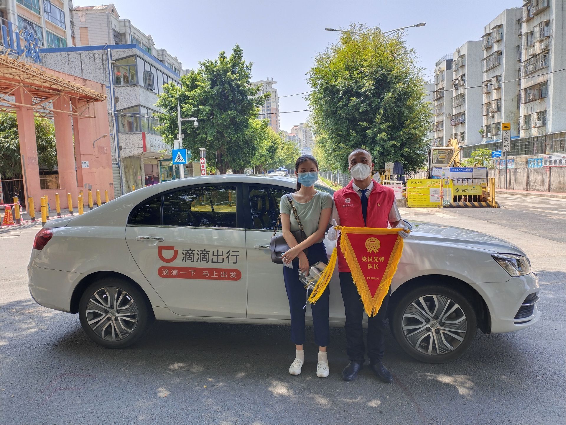 觀察黃天華的車,會發現有一些不同于其他滴滴網約車的地方:貼在車外的“網約車黨員司機崗”的標識,儀表臺上放置的黨旗、國旗,座椅靠背上掛著的黨史知識圖,座椅袋里放著的黨史書。黃天華在駕駛網約車時也會佩戴中國共產黨黨員徽章上崗?!拔矣?6年黨齡,既是最早一批加入滴滴出行深圳流動黨支部的黨員駕駛員,也是首批正式‘亮標上崗’的深圳網約車‘黨員司機’之一。市民在網約車平臺上打車時,‘黨員司機’會有清晰的標識,有了這個標識,時刻提醒我要為大家提供更高質量的服務。”黃天華說。