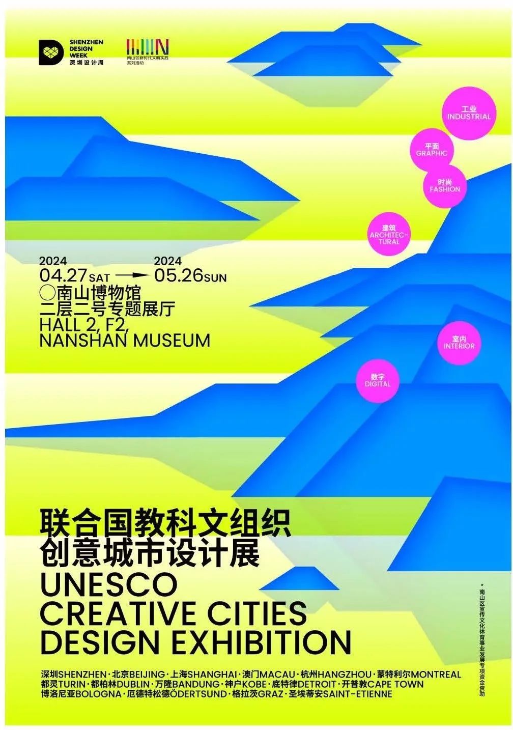 活動簡介:本次展覽將邀請15至20個全球創意城市,精選其設計案例及往屆聯合國教科文組織新銳獎獲獎作品參展,展示其如何通過設計打造城市名片,解決城市治理難題,改善城市生活環境,提升市民幸福感,實現產業轉型升級,賦能產業發展等。