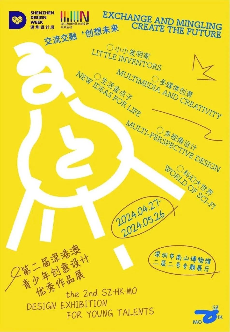 活動簡介:本次展覽以“明天的創想,未來的設計”為主題,展出來自深港澳三地、年齡不超過20周歲(含20歲)青少年的128件作品。整個展區分為“小小發明家”展區、多媒體創意展區、生活金點子展區、多視角設計展區、科幻大世界展區和互動打卡區六大板塊。旨在通過創意與設計作品展現深港澳地區青少年對大灣區未來的精彩描繪與美好憧憬,促進三地青少年之間的交往交流、交心交融,共同塑造和豐富灣區人文精神內涵,在創意設計領域形成常態化的交流互動。