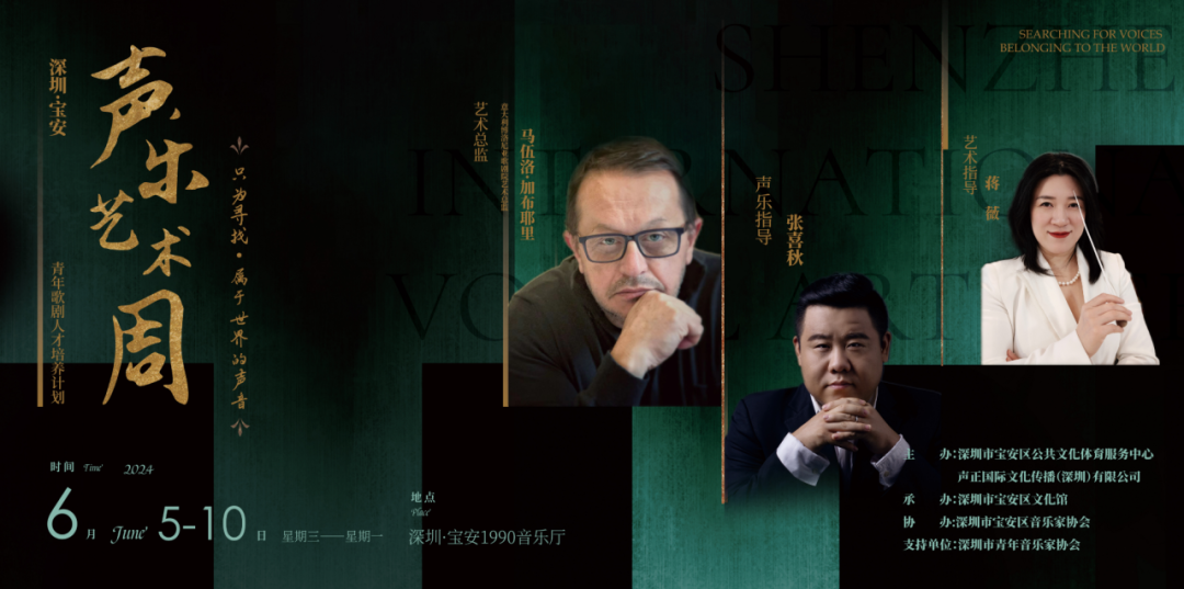 活動簡介:為助力貫徹落實國家關于“努力造就一批有影響的各領域文藝人才,建設一支宏大的文藝人才隊伍”指示精神,本活動通過國際一線歌劇院藝術總監、音樂學院教授、著名歌劇表演藝術家、歌劇藝術指導、聲樂教育家、歌唱家組成的專家團隊為青年歌劇人才做技能提升和職業規劃指導,幫助他們從寶安走向國際舞臺,從而更好的為我國歌劇事業發展做貢獻。同時吸引更多文藝人才和資源向寶安匯聚,展示寶安的文化魅力,傳播寶安的文化故事,助力打造具有國際影響力的寶安文化形象。