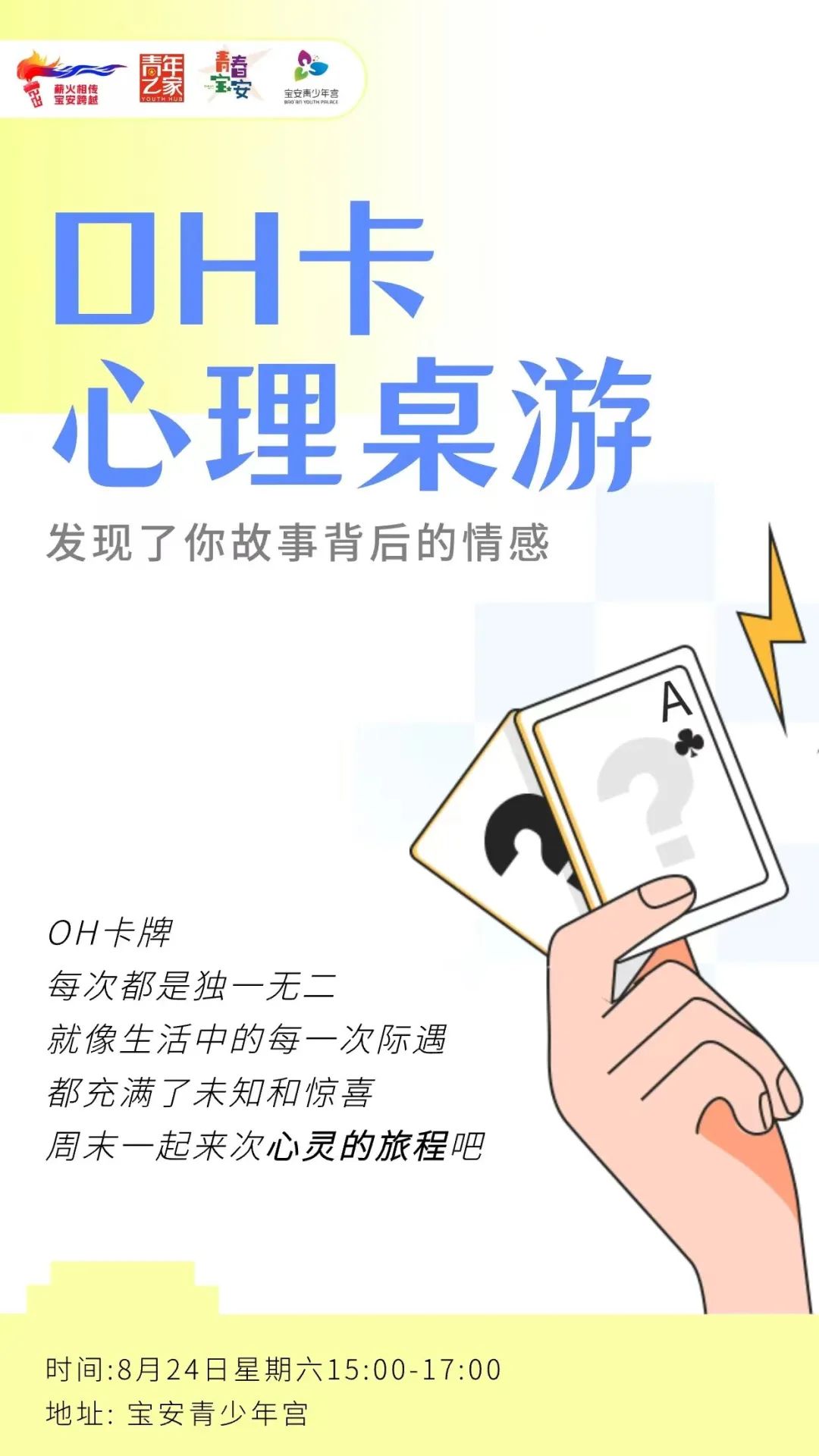 活動簡介:OH卡牌每次抽取都是獨一無二,如同生活中的每一次際遇都充滿了未知和驚喜,每一次的解讀都像是一次心靈的冒險,幫助個人或團體在共同探索中建立聯系,增進理解和信任。