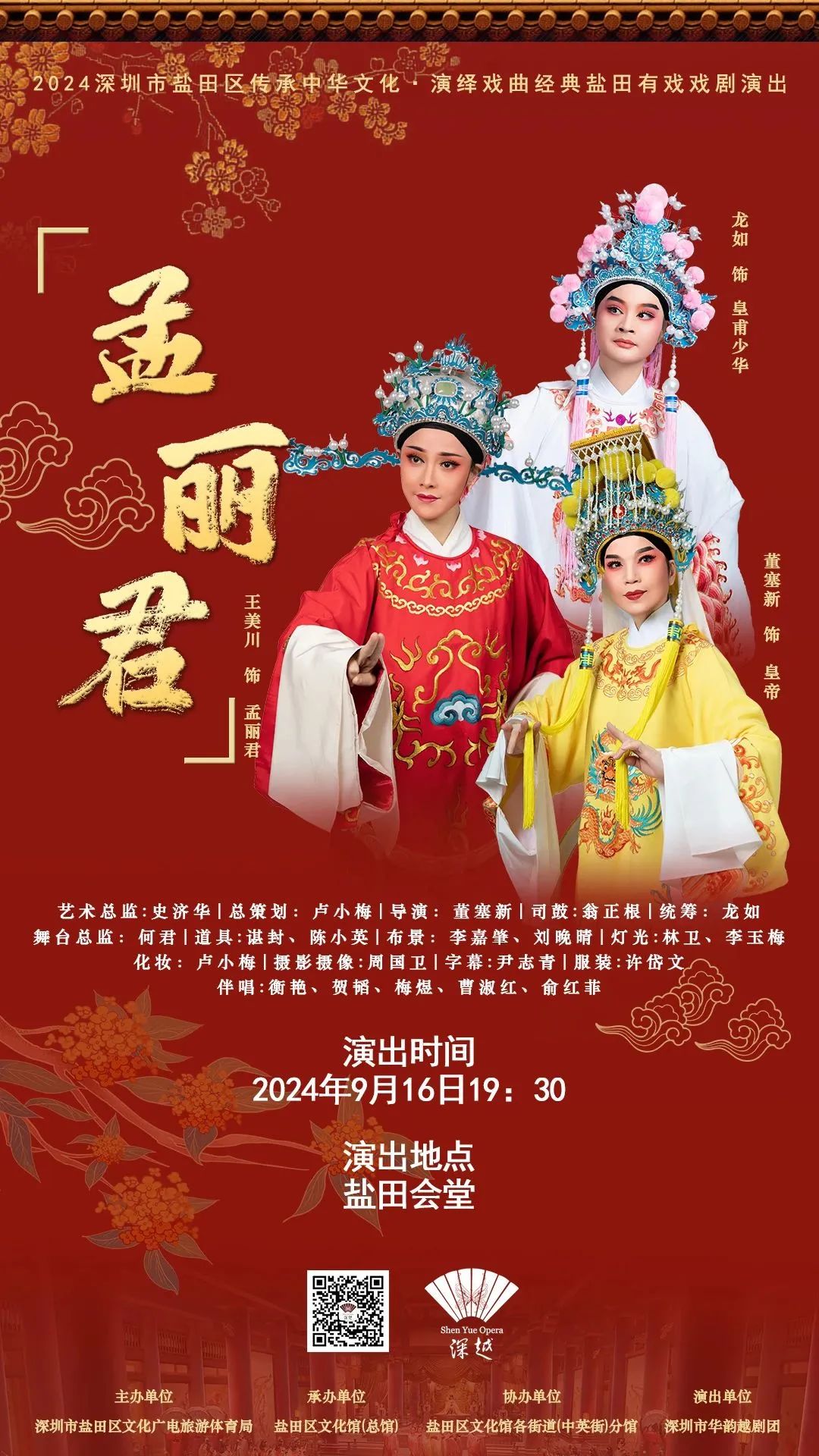 活動簡介:繼《梁山伯與祝英臺》、《五女拜壽》之后,深圳市華韻越劇團再度攜手,為鹽田觀眾帶來越劇經典《孟麗君》。這部融合了愛情、智慧與忠義的劇目,將在中秋前夕的鹽田區文化館璀璨上演。屆時,舞臺上的每一個轉身、每一句唱詞,都將帶您領略越劇的獨特魅力,體驗一場視聽盛宴。本場演出為公益免費演出,活動由深圳市鹽田區文化廣電旅游體育局主辦,鹽田區文化館(總館)承辦,鹽田區文化館各街道(中英街)分館協辦,深圳市華韻越劇團傾情呈現。