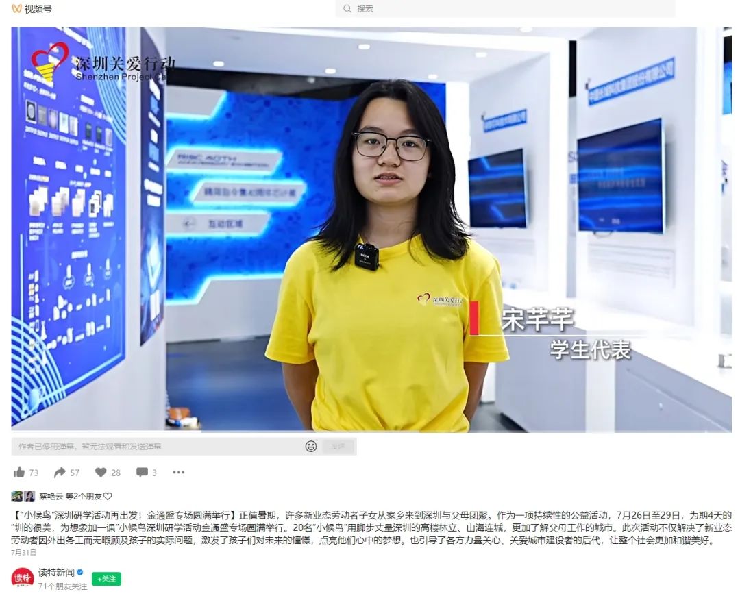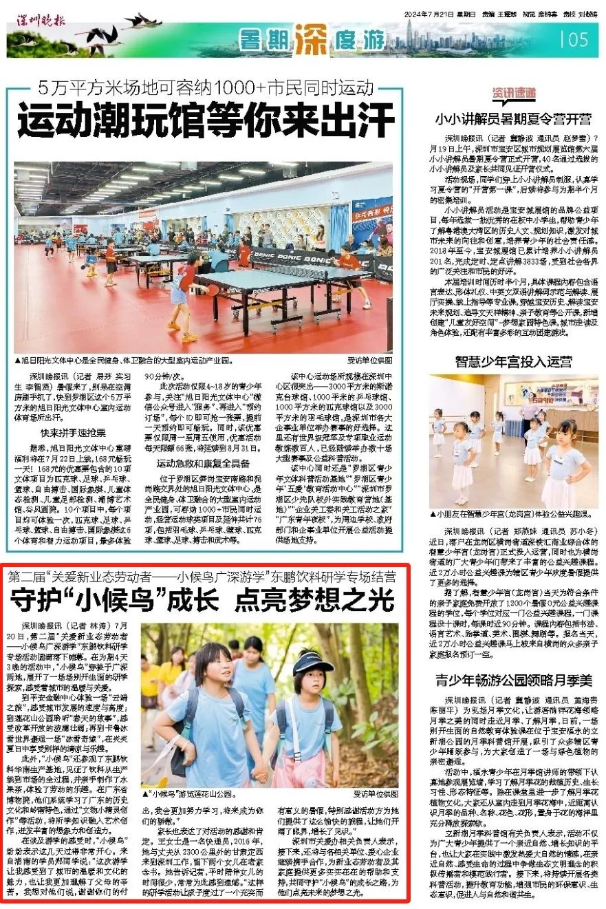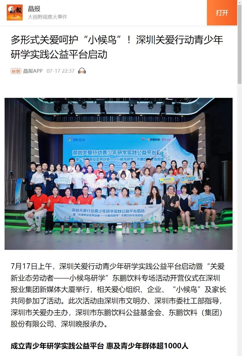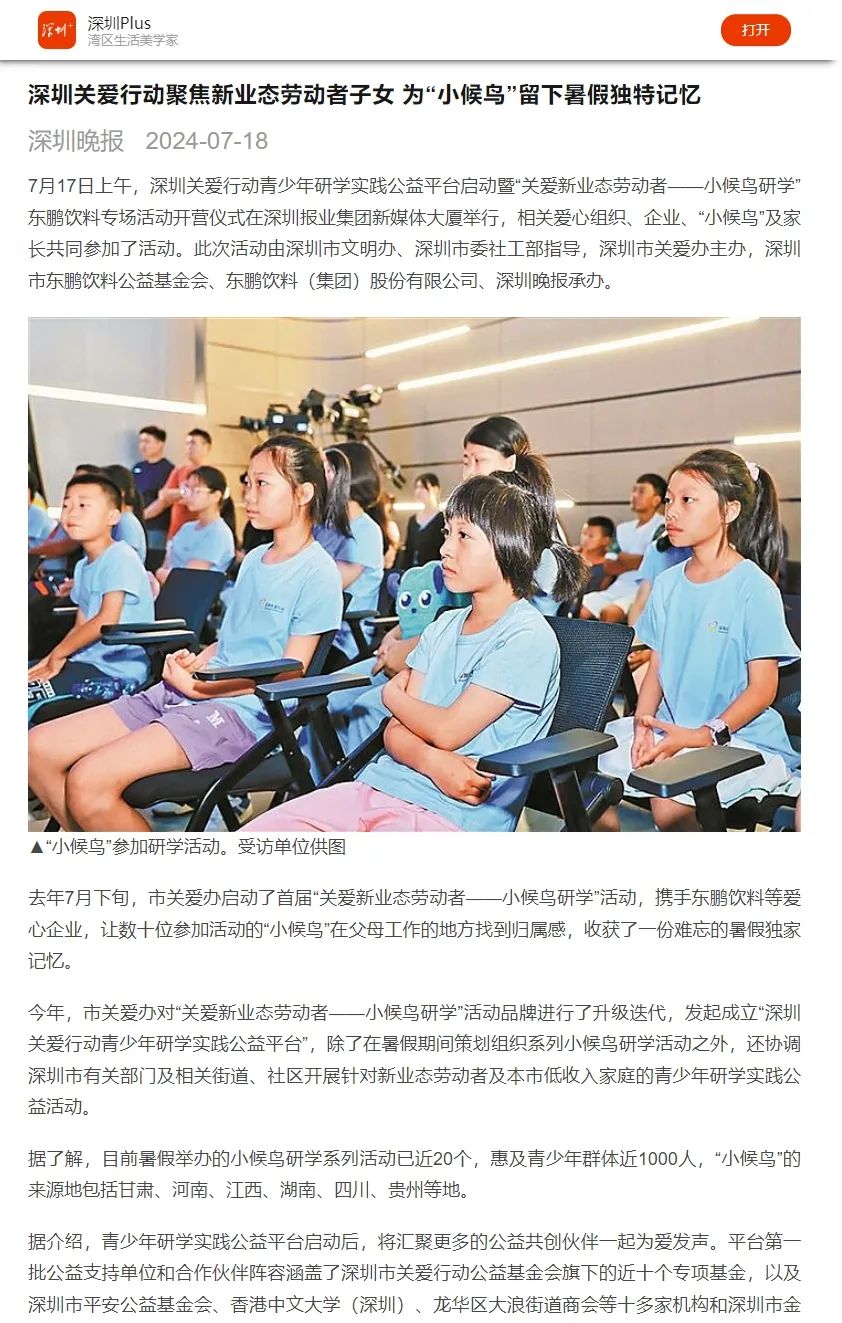 在這個充滿愛與希望的夏天,在市文明辦的指導下,市關愛辦發起了“深圳關愛行動青少年研學實踐公益平臺”,匯聚30余家愛心單位,共同為數千名來自五湖四海的“小候鳥”們打造了一場意義非凡的暑假研學盛宴。截至8月底,48場精彩紛呈的研學活動圓滿落幕,讓愛在深圳這座創新之城溫暖傳遞。