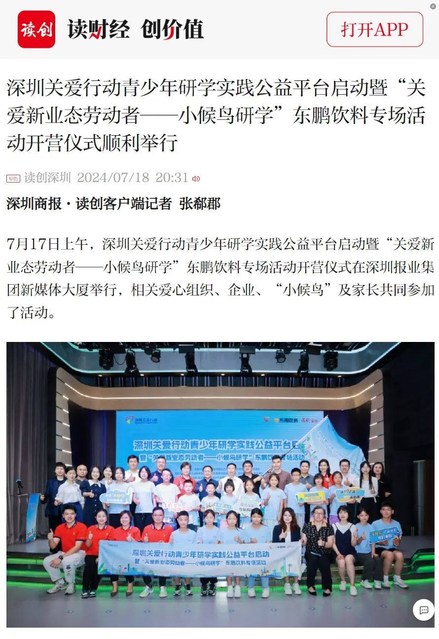 “關愛新業態勞動者——小候鳥研學”東鵬飲料專場活動