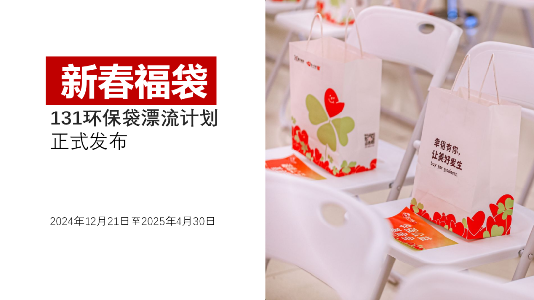 活動簡介:新春福袋131環保袋漂流行動,是由深圳市小鴨嘎嘎公益文化促進中心聯合德義慈善·益+小站慈善商店,共同發起的一次公益行動。該行動希望通過從關愛他人的角度去促進環保袋重復使用,讓更多人從更為生活化的視角探討可持續的生產和生活方式,探討以“重復使用”模式有效助力塑料污染治理的可能。