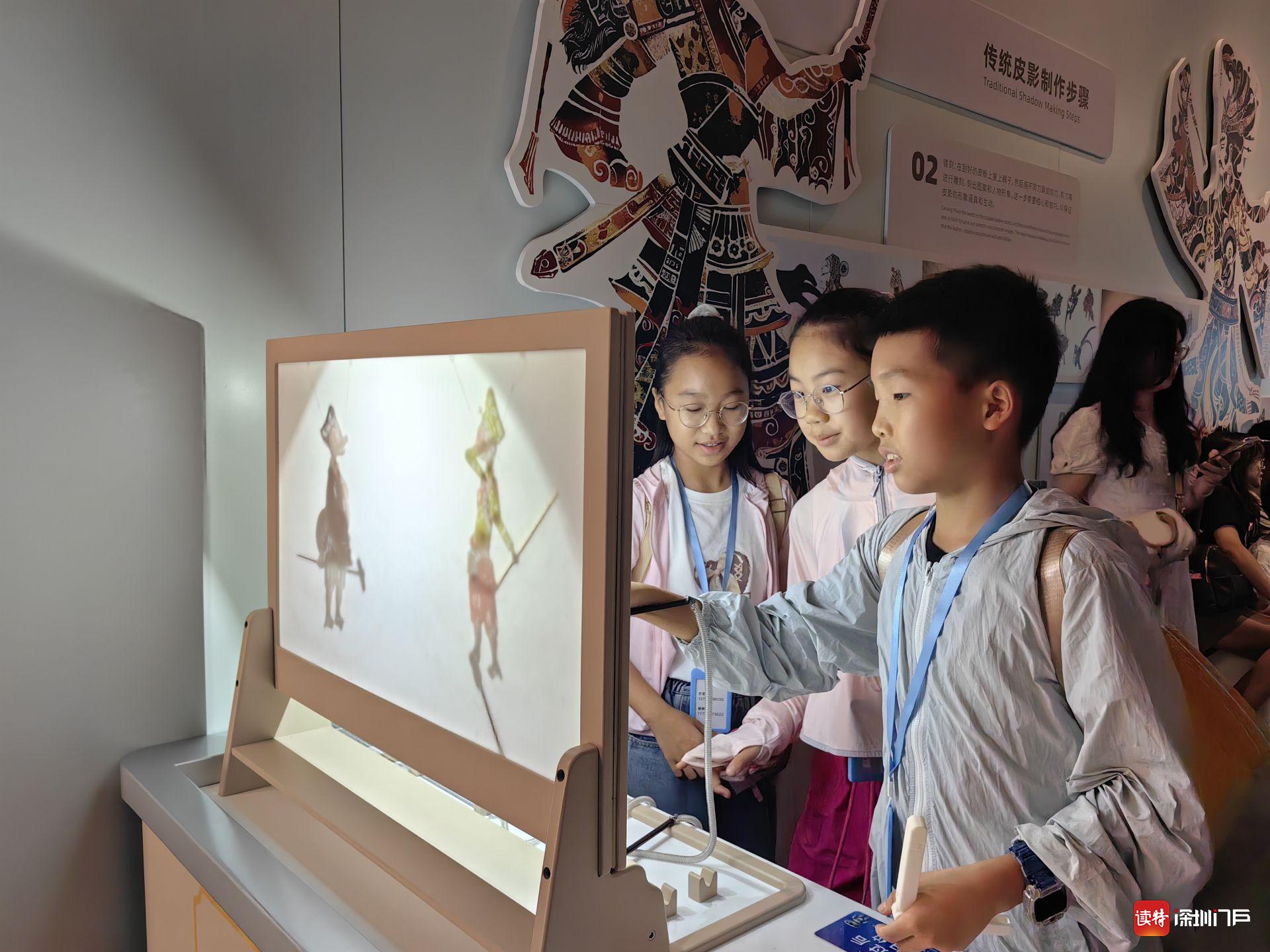 孩子們?cè)诳萍拣^體驗(yàn)高科技版本的皮影戲。