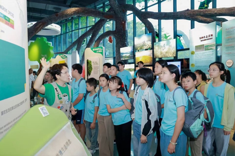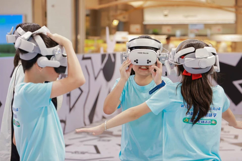 第三天清晨,探秘城市中心的“候鳥(niǎo)天堂”——福田紅樹(shù)林生態(tài)公園。孩子們舉著用東鵬飲料瓶自制的“生態(tài)觀察筒”,搜尋灘涂上的候鳥(niǎo)蹤跡。小小的塑料瓶,此刻成了連接自然與創(chuàng)造力的橋梁。當(dāng)電梯直抵平安金融中心的云端之巔,116層觀光層上,深圳壯闊的城市畫(huà)卷在腳下鋪展,小小的手指興奮地指點(diǎn)著熟悉或陌生的地標(biāo)。巨大的阻尼器模型前,孩子們屏息凝神,聆聽(tīng)講解員介紹這座摩天大樓如何防風(fēng)抗震屹立不倒,黑科技的震撼無(wú)聲傳遞。而在深圳報(bào)業(yè)樹(shù)莓VR未來(lái)影院,戴上頭顯,跟隨九大IP劇目開(kāi)啟四維沉浸體驗(yàn),一秒穿越古今,研學(xué)的科技范拉滿。