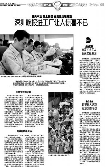 工人不出廠區 能看深圳晚報